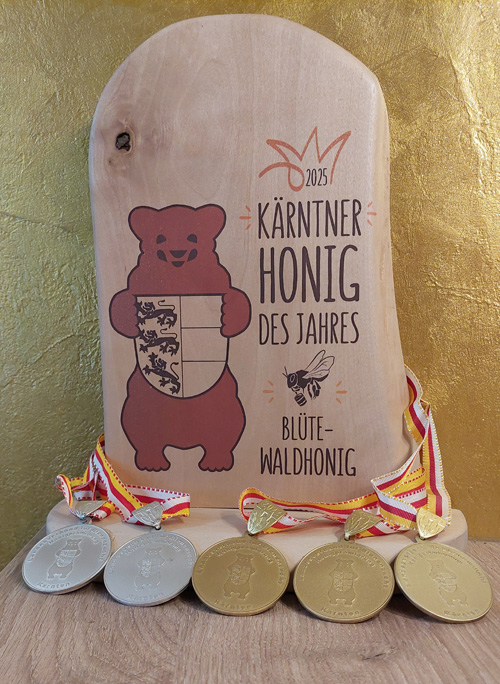 Bei der jährlichen Kärntner Honigprämierung erzielte Medaillen: 2020 Silber, 2021 Silber, 2022 Gold,